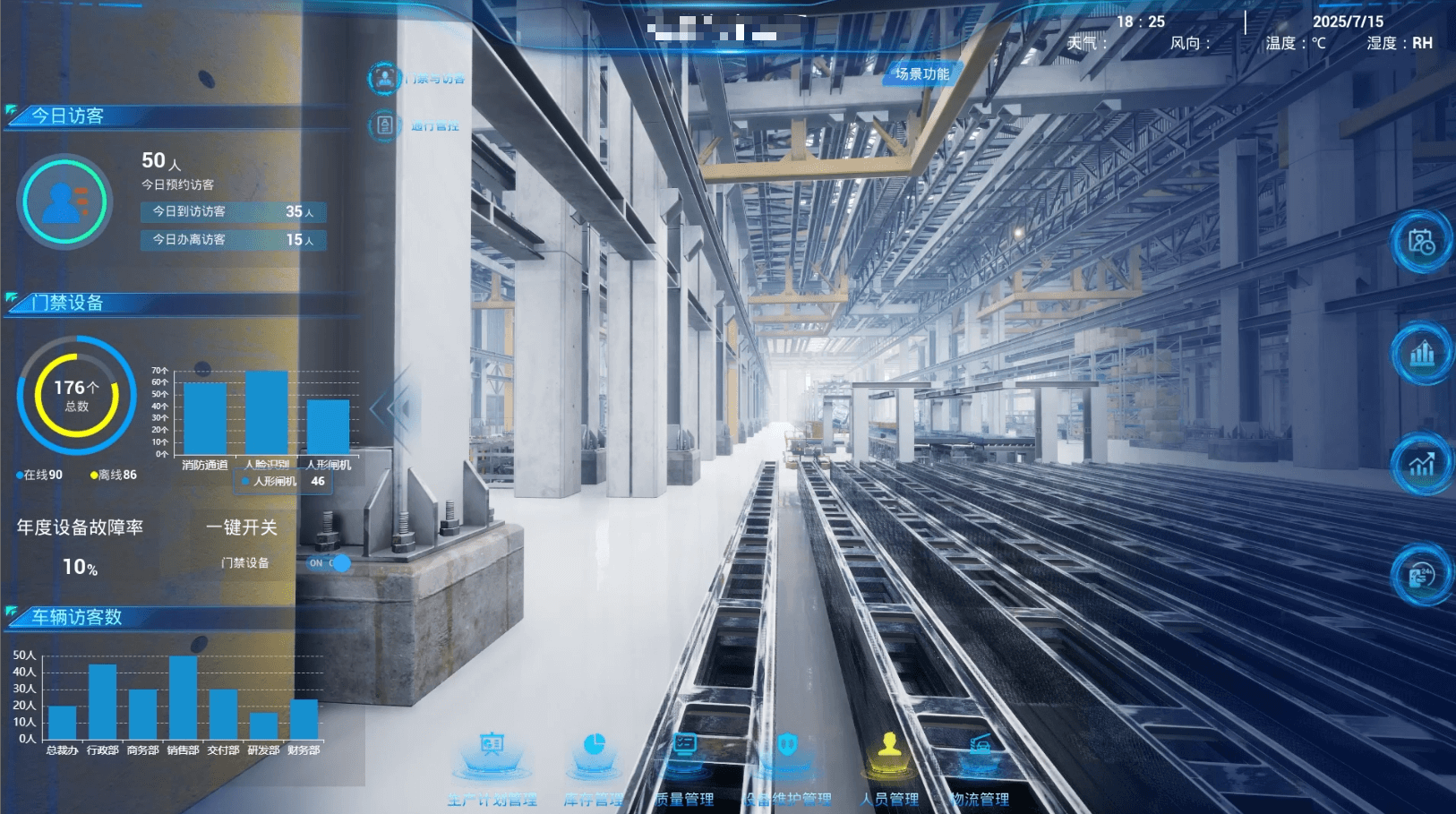 将物理工厂1:1映射到数字世界,支持地面机器人第一视角巡检和无人机俯瞰巡检