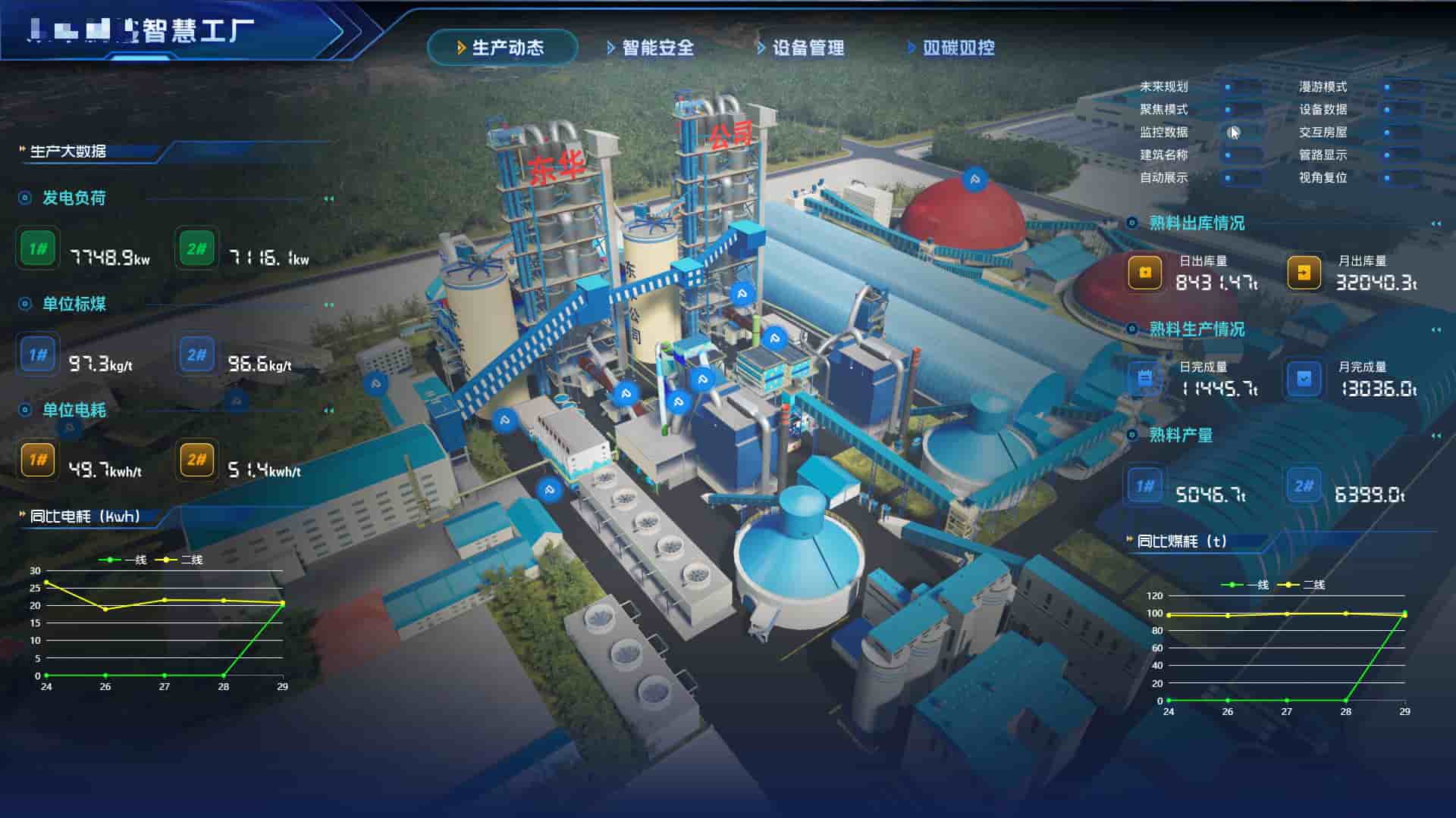 支持对园区建筑、设备、监控点、水电气管网的全三维俯瞰与逐级穿透。 实时展示生产运行状态与管线流向,实现"一图览全局、一键查细节"。