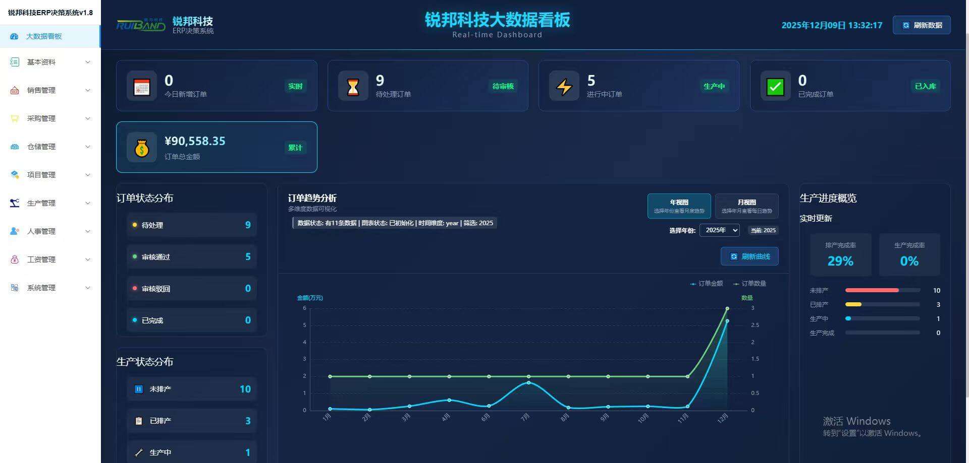 专为制造企业打造,系统实现订单自动下达、智能排产与精准物料管理,实时监控库存并自动触发采购,集成成本核算功能,提供科学报价建议,助力企业降本增效,实现精细化生产管控